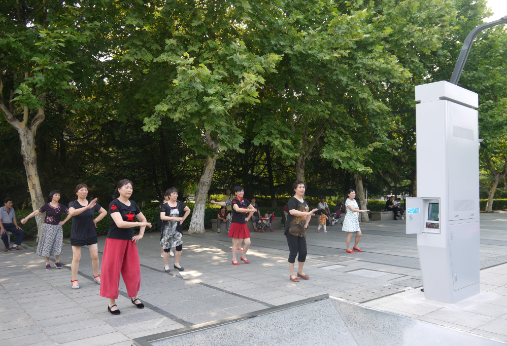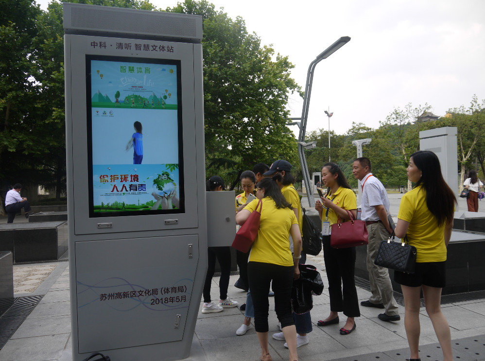 下午,來自30個(gè)省(市、自治區(qū))參加“文化館廣場舞普及推廣培訓(xùn)班”的52名學(xué)員、京杭大運(yùn)河沿線城市文化館合作發(fā)展聯(lián)盟的20個(gè)文化館負(fù)責(zé)人等來到蘇州高新區(qū)新區(qū)公園參觀并體驗(yàn)了智慧便民公共文化設(shè)施智慧廣舞場系統(tǒng)。