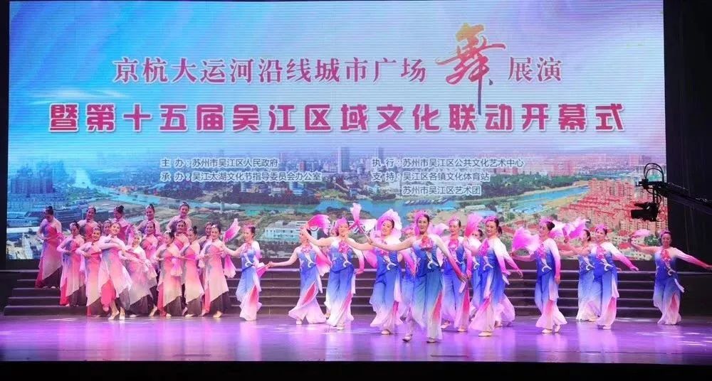 6月15日,京杭大運(yùn)河沿線城市廣場舞展演暨第十五屆吳江區(qū)域文化聯(lián)動(dòng)在蘇州市吳江人民劇院開幕,來自北京、天津、河北、山東、江蘇、浙江六省(市)的15支廣場舞團(tuán)隊(duì)400多名演員齊聚蘇州吳江。