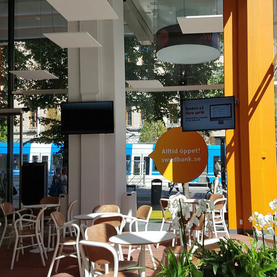 使用定向揚聲器和專門制作的音頻內容降低了語音的可懂度,增加了隱私并增添了愉悅的氛圍。 定向揚聲器不干擾視覺表達。 該定向音頻解決方案現已在瑞典各地的 50 多個瑞典銀行辦事處實施。 為瑞典銀行創建的概念聲音設計和聲音掩蔽在 2019 年國際聲音獎中獲得了三個類別的更好聲音獎,以及通用設計類別的伊莎貝爾獎優勝者獎。