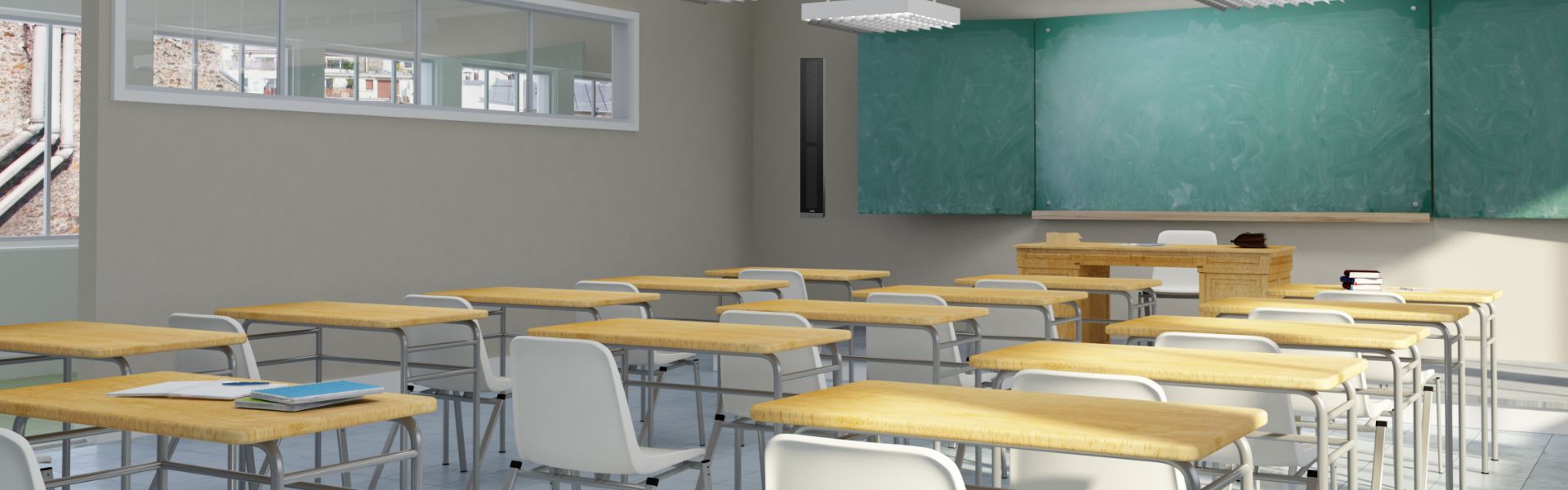 清聽聲學教學擴聲音箱系統由擴聲主機與多個無線麥克風組成。擴聲主機通常在黑板兩側采用特殊角度安裝方式,有效減少由聲波反射引起的混響干擾,實現聲場在教室課桌椅區域(即學生聽課區域)的集中均衡傳播。采用空間波束成形與高性能轉向控制的語音算法以及聲場仿真設計,實現教室內聲場均衡,使教室任意位置聲音明亮清晰,讓授課聲入人心,無線麥克風一鍵連接主機,自主調控音量,操作簡單,輕松上手,成為老師的授課助手。清聽聲學教學級擴聲系統實現了保護青少年聽力健康和教師無憂上課的雙璧組合。
